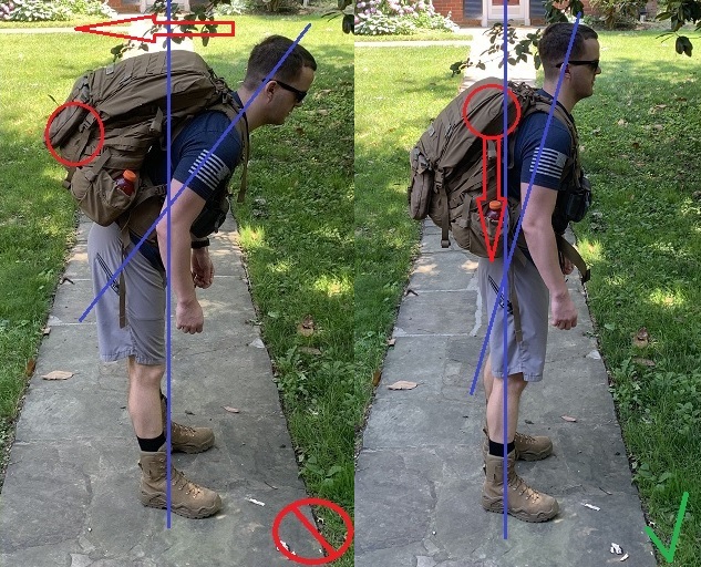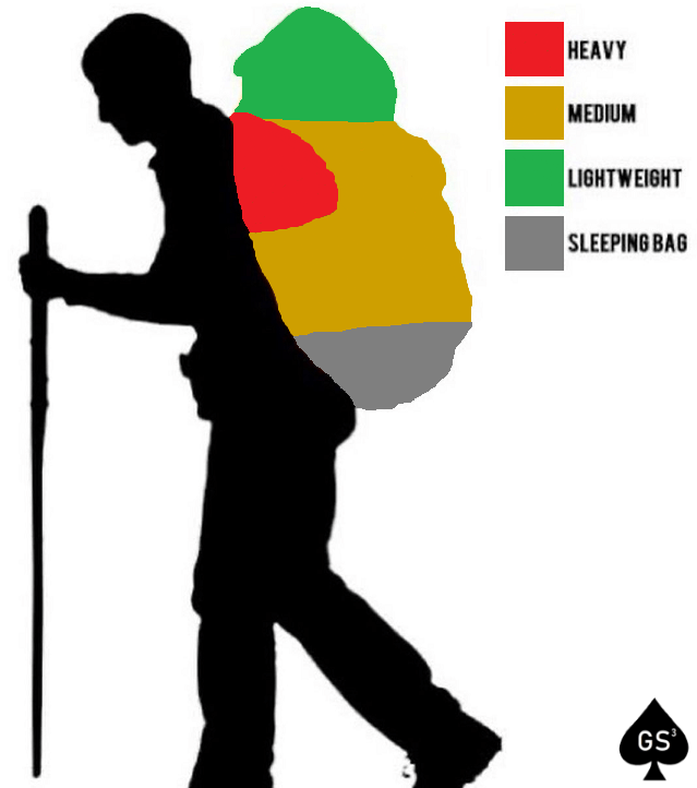 Imagine a line running vertically down your body, bisecting your center of gravity. Anything you put on one side must be counterbalanced on the other, just like a see-saw. Placing the heaviest weight in your pack lower, and even worse, further away from your body, means that you’ll have to balance in an increasingly awkward position. It will also give you a sensation of being pulled or dragged backwards. This translates to extra effort being exerted to balance the weight, an unnatural walking position, increased risk for injury, and an overall increased energy expenditure.